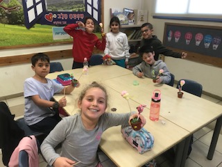 לכבוד ט״ו בשבט הכינו התלמידות נויה ודנה פעילות מהנה לילדי הכיתה - הכנת עציץ אכיל. הילדים קשטו את העציץ, האדמה נוצרה מכדורי השוקולד והפרחים היו תותים וממתקים. לסיום עשו תפזורת על טו בשבט. כל הכבוד לבנות!
